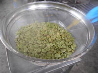 ↓ふりかけに入るごまとしらすをオーブンで焼くために鉄板に広げています