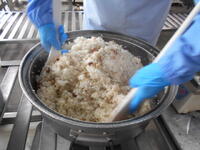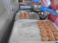 11月は27日を和食の日として、千葉県の郷土料理の山河(さんが)焼きを、あじのすりみを使って作りました。豚ひき肉も合わせて作ったため、ほどよい肉肉しさがありおいしかったです。