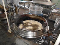 ↓「手作りりんごゼリー」のゼリー液を釜で作っています