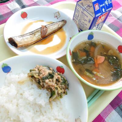 1年生からは、「これ(生揚げの肉味噌煮)がおいしくて、ごはんといっしょにおかわりした!」「サラダがにがてだけど、すこしはたべられたよ」「くだものが、ほいくえんのときよりおおきく(切り方)なってうれしい!」「くだものすっぱい~」など、たくさんの感想を教えてくれました。