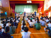 3年生は、朝学習の時間、市川市消防団員の方々を講師に招いて、防災教育について学びました。AEDを使う目的やその使い方について、知ることができました。