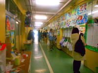 各教室、特別教室に昔遊びのコーナー(けん玉、だるま落とし、お手玉、こま、あやとり、おり紙)を作り、児童それぞれが担当の教室で園児達と交流しました。会の最後には、1年生からメダルをプレゼントしました。笑顔溢れるとてもよい会になりました。