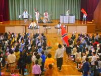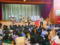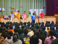 最後は世界で一番有名な曲との紹介で、前奏が始まりました。少し経つと、校歌のメロディが聞こえてきました。スティールパンが奏でる校歌はとても重みがあり、みんなで校歌を大合唱して終わりました。とても楽しい、あっという間の1時間でした。
