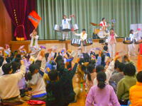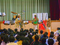 今日、PAN NOTE MAGICの皆さんを招いて芸術鑑賞教室を行いました。スティールパン(ドラム缶から生まれた楽器)を使って、ジブリの曲メドレーやベートヴェン作曲「よろこびの歌」などいろいろな曲を演奏してくれました。途中、スティールパンの歴史について、劇で分かりやすく説明もしてくれました。
