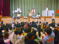 4年生は、8日(水)~10日(金)3日間、講師に前田安規子先生をお招きして、お琴教室を行いました。これは、音楽「日本の音楽でつながろう」の学習の一環です。お琴の各部分の名称や、座り方、譜面の読み方から始めた子供達でしたが、最終日の今日は、お琴で「さくら さくら」を見事に奏でました。子供達の奏でた音色を伝えられないのが残念です。
