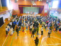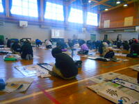 今日は、2学期最終日です。体育館で「冬休みを迎える会」を行いました。