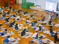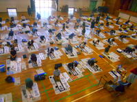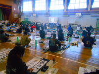 今日は5年生が、市川昴高校の加藤先生に書き初め「世界の国」を指導してもらいました。昴高校書道部の生徒さん達もたくさん来てくれて、子供達にいろいろなアドバイスをしてくれました。