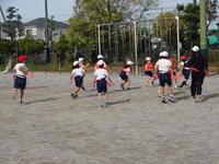 バッターがボールを打つとき、応援の子供達は「打って、投げて、カキーン!」と声を合わせて応援します。バッターは、ボールを打つと、速いスピードでベースを回り、守備の子供達は、ボールを必死で追いかけていました。とても楽しい体験授業でした。
