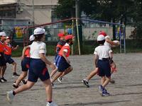 今日は、4年生は3回目のタグラグビー出前授業がありました。子供達は、講師の方々に慣れ親しんでいて、校庭で準備をしている様子をうれしそうに眺めていました。今日は、各学級5チームに分かれてタグラグビーの試合を行いました。ボールをタッチすると子供達は、紅白帽子を白から赤にかえます。時間がたつにつれ、それぞれのチームには赤帽の子供が増えていきました。