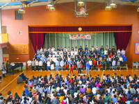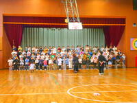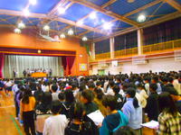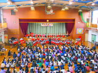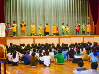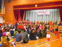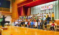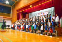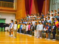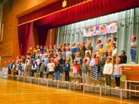 楽しく歌う1年生の歌声が体育館いっぱいに響きました。