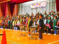 八木節は5年生の息がぴったり合った見事な演奏でした。みんなの奏でる楽器の一つ一つの音が重なり、音の流れに引き込まれました。「広い世界へ」の合唱はソプラノとアルトの声が重なり、とてもきれいな歌声でした。
