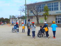 4年生は、社会福祉協議会の方々をお招きして、体の不自由な方々のお手伝いや車いすの乗車体験をしました。子供達は車いすに乗車して、校庭を移動する中で、小さな石や、段差などが、移動の妨げになることを実感していました。