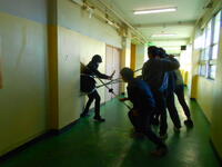 5時間目に市川警察の方を招いて、不審者対応避難訓練を行いました。これは、不審者侵入などの緊急事態を想定し、安全に、速やかに避難するための訓練です。警察の方が、不審者に扮し、校内を回りました。どの教室も施錠し、机やいすでバリケードを作り、不審者が教室に入らないようにしていました。子供達は、窓側に集まり、声一つ出すことなく、不審者が確保されるのを待っていました。10分ほどの時間でしたが、緊張する時間でした。最後に警察の方から、いかのおすし「ついていかない」「車にのらない」「助けてとおお声を出す」「怖い思いをしたら大人のいるほうにすぐ逃げる」「周りの人にすぐしらせる」についての話がありました。自分たちの安全を確保するためにどう動いたらよいか確認するいい機会になりました。