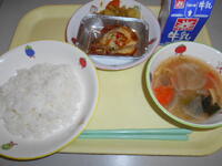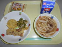 ちくわのからしあえ さつまいもの豚汁 牛乳
