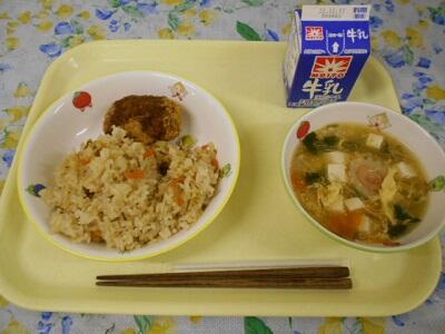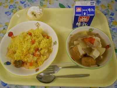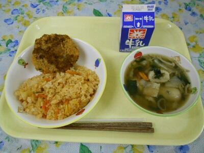 ポテトピラフ、ローストチキン、ポトフ、牛乳