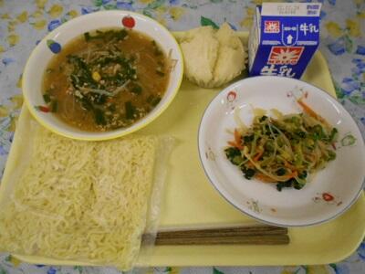 ジャージャー麺、サンラータン、ヨーグルト、牛乳