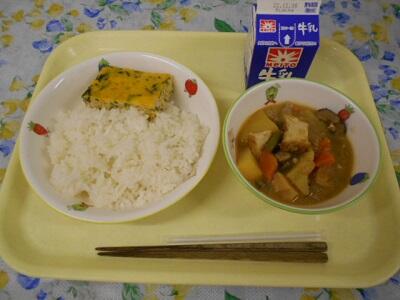 にんじん:船橋市 きゅうり:埼玉県 里芋:愛媛県 ほうれん草:茨城県 牛乳:千葉県他