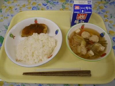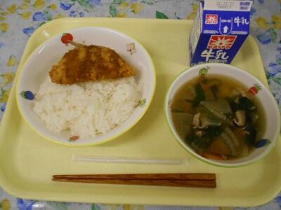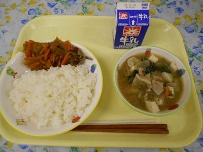 牛乳:千葉県他 とうふ:国産 わかめ:三陸 豚肉:千葉県 米:福島県会津