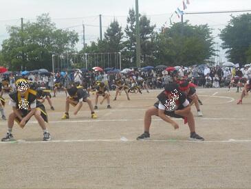 結果的には、9時頃からぽつぽつと雨粒が感じられ始め、全学年の団体演技、競技が終了したところで、延期としました。