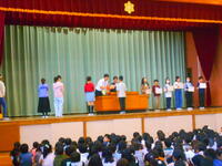 区切りの式の後は、陸上部壮行会でした。42名の部員がステージに上がり、全校児童からたくさんの応援を受けました。陸上大会は10月25日(金)に国府台スポーツセンターで行われます。大会に向けて、陸上部のみなさん頑張ってください。