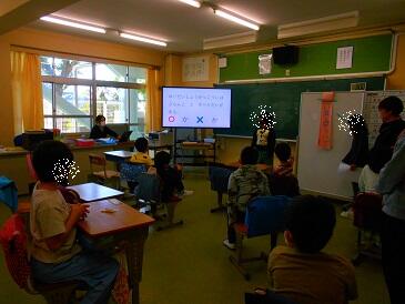 3年生の次は4年生です。4年生は特別教室を教えてくれました。給食室や保健室、図書室など教室以外にもたくさんのお部屋があることがわかりました。