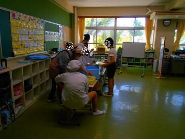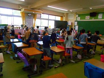 朝の支度はしばらくの間、6年生がお手伝いに来てくれました。