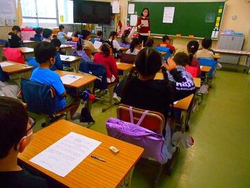 3年生からは外国語活動の学習が始まりました。外国語指導員の先生と担任の先生の2人で授業を進めます。