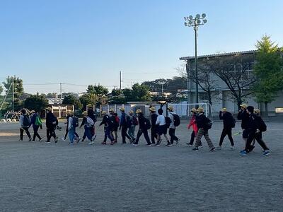 朝、6:50に集合し、国府台スポーツセンターに向けて歩いて向かいました。