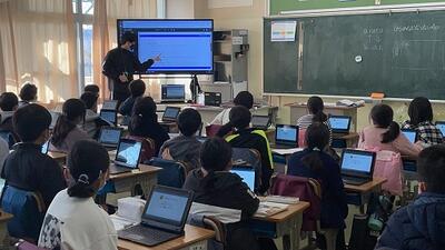 タブレットを使った学力テストの様子