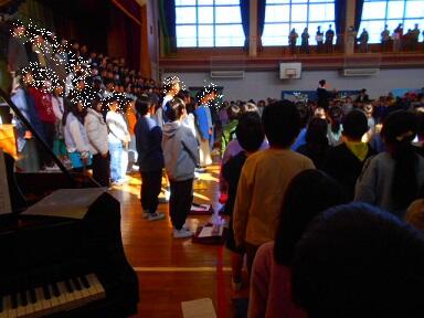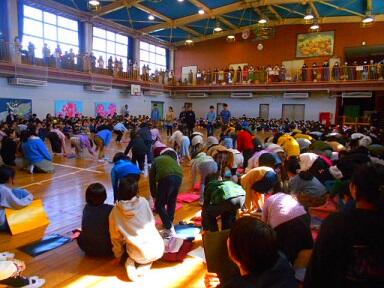 体育館のギャラリーには6年生の保護者の皆さん、フロアーには学校運営協議会委員の皆さんにも参観いただきました。