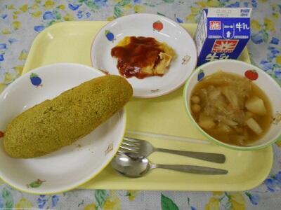 抹茶きなこ揚げパン、鶏肉ピカタ、ポトフ、牛乳