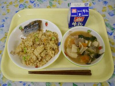 切干大根ごはん、サバの甘露煮、豚汁、牛乳
