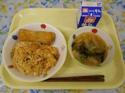 ビビンバ、春雨スープ、オレンジゼリー、牛乳