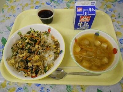 ビビンバ、肉団子スープ、ぶどうゼリー、牛乳