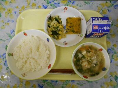 にんじん:船橋市 きゅうり:埼玉県 里芋:愛媛県 ほうれん草:茨城県 牛乳:千葉県他