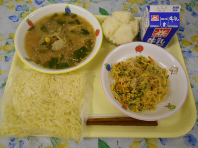 味噌ラーメン、バンサンスー、手作り肉まん、牛乳