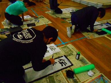 3年生以上は「書初め会」もありますので、毛筆の練習をしました。