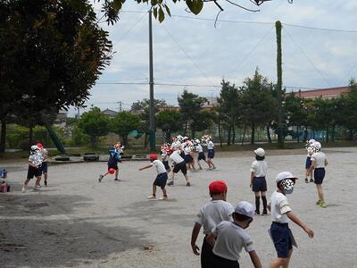 個人競技が終了後、5,6年児童が後片付けの手伝いをしました。閉会式は、昼学習(13:30~)の時間にチームスを使ってリモートで行いました。今年は、わずかの差で白組の優勝となりましたが、勝っても負けても、「最後まで全力でがんばったもん勝ち!!」で締めくくりました。