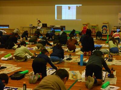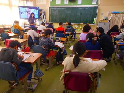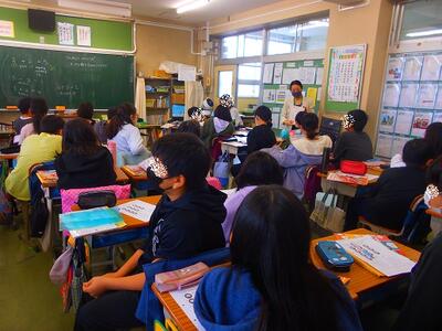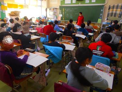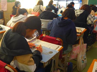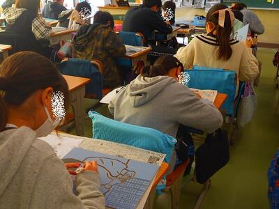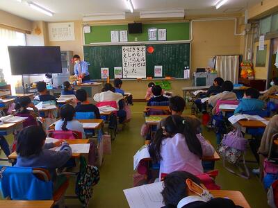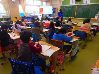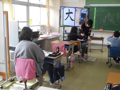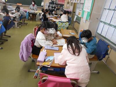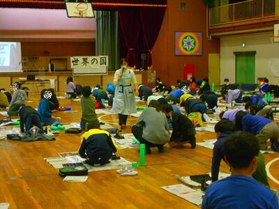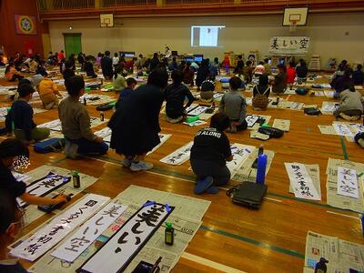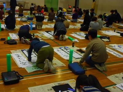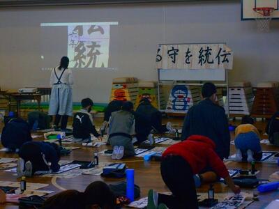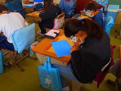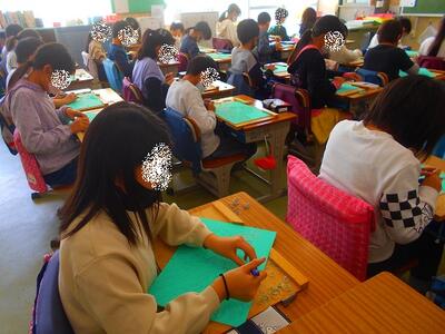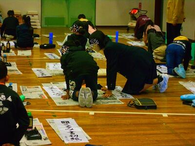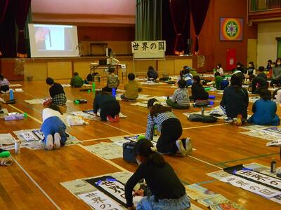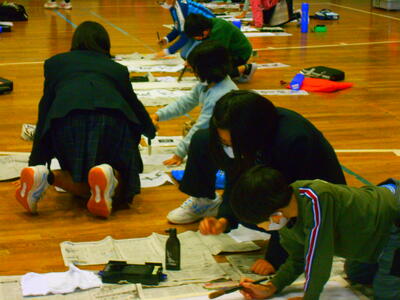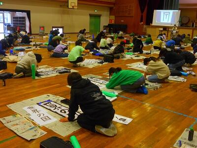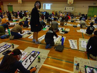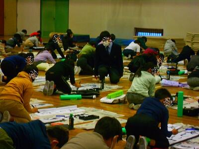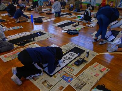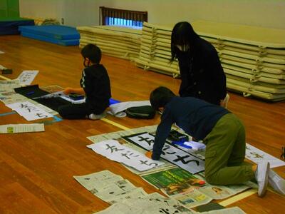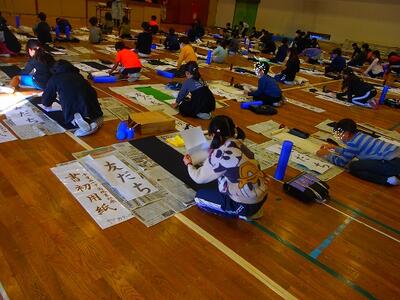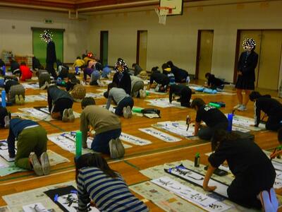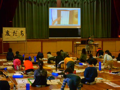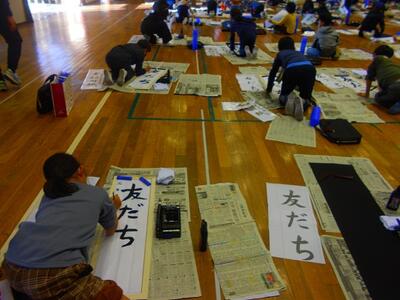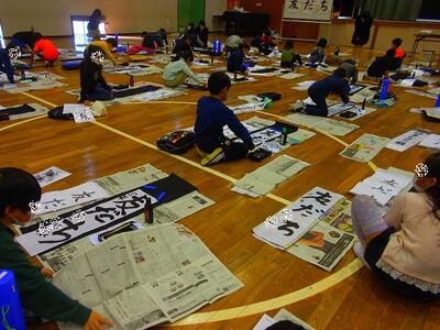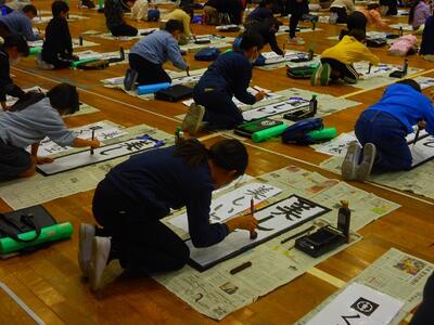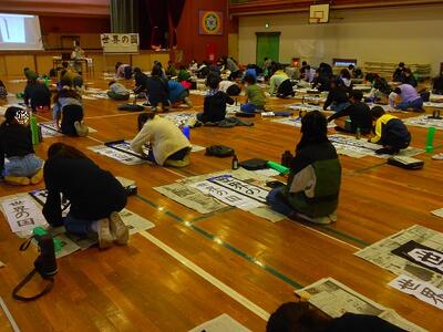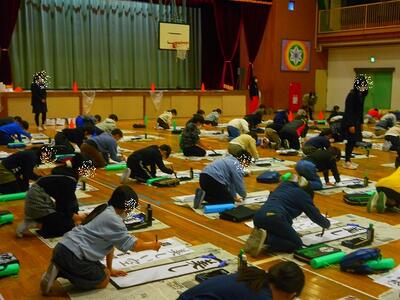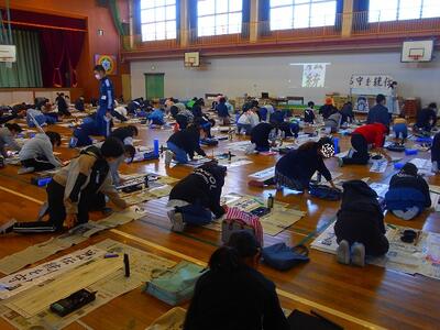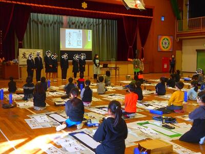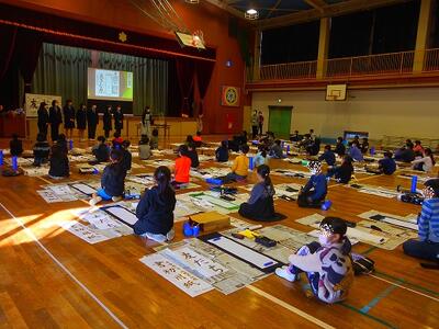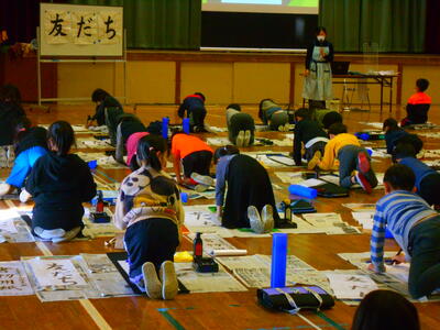 12月13日(火)~12月16日(金)まで3年生から6年生まで、各学年2時間ずつ体育館においてかきぞめ練習を行いました。昨年に引き続き、今年も県立昴高校の書道の先生にお越しいただき、丁寧にご指導いただきました。また、3年生と4年生の会には書道部の生徒さんも応援に駆けつけてくれて、子どもたちに手取り足取り教えていただきました。昴高校の皆さん、ありがとうございました。教わったことを生かして、冬休みに各自練習をして、1月の本番に向けて頑張ってほしいと思います。