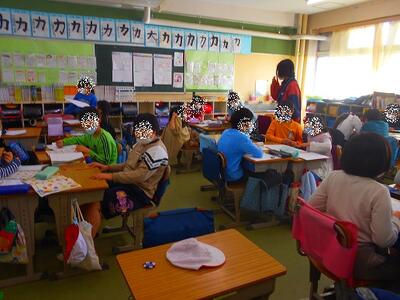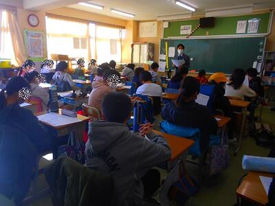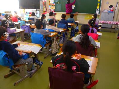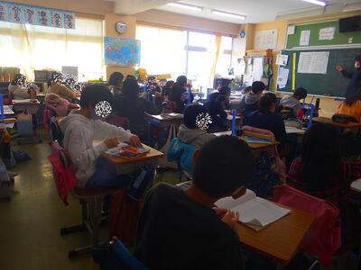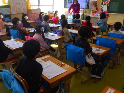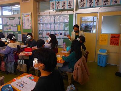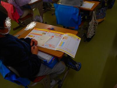 迎える会の後、各教室では「冬休みのしおり」を使って健康で安全な生活について、確認しました。