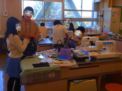 家庭科の学習でミシンを使って、エプロンづくりに挑戦しました。