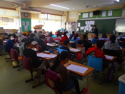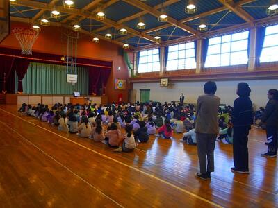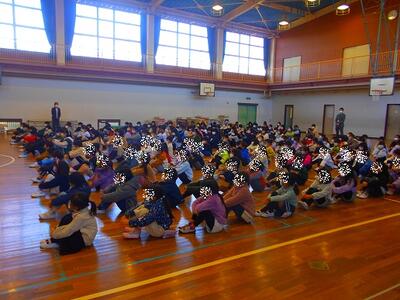 昨日、23日(金)で2学期を終了しました。3校時には、1,6年生が体育館に集合し、他の学年は教室でリモートで参加の形式で、冬休みを迎える会を行いました。校長と生徒指導主任より話をしました。有意義な冬休みとなるよう願っています。地域の皆様、2週間余りですが子どもたちが地域に帰ります。見守りをどうぞよろしくお願いいたします。