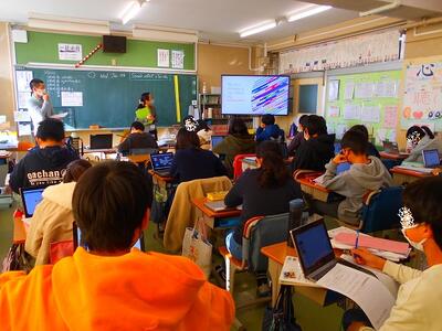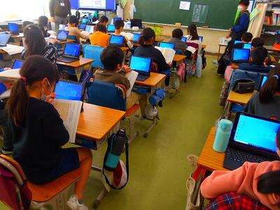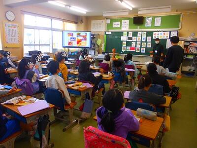 1月30日の6年生、2月15日の4年生に続き、2月16日(木)に5年生がインターネットトラブル防止授業を行いました。時代の流れとともに、小学生でも自分専用のスマートフォンやタブレットを所持する割合が増えてきています。正しく使えば便利なものですが、間違った使い方をしてしまうと、自分が被害者にも加害者にもなりえる事例も多数発生していると聞きます。基本は各ご家庭でルールを決めていただくわけですが、インターネットは全世界とつながっているという認識のもと、学校でもトラブル防止となる学習を少しずつでも行っていこうと思います。