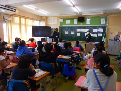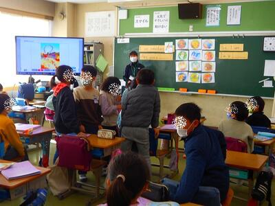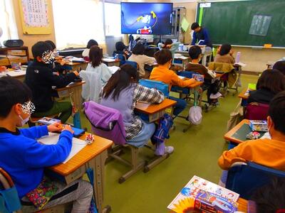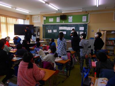 2月22日(水)に全校集会を行いました。全校集会はコロナ禍の中ではリモートで行ってきましたが、2学期後半からは体育館に2学年ずつ入って、一部対面方式で行うようにしています。今回は感染対策をしたうえで1,3,5年生の3学年の児童と対面で行ってみました(他の学年はリモートで)。来月は2,4,6年生と対面で行いたいと思います。様子を見ながら大丈夫そうであれば、3月の離任式には全校児童が体育館に入れるといいなと考えています。(もちろん、喚気をしたうえで児童はマスク着用で話をしない等の対策を行います)
