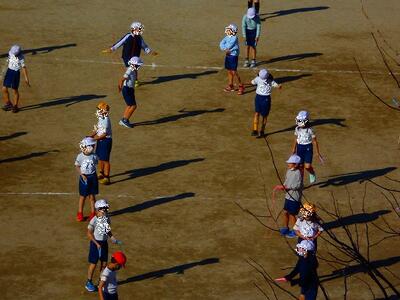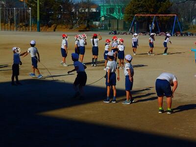 体育の時間には長縄跳びや縄跳びをして体を鍛えています。
