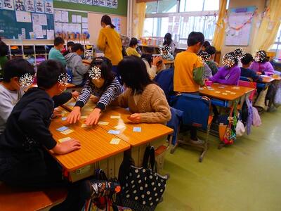 百人一首も頑張っています。上の句を読んだだけで、札をとれてしまう子も何人かいます。
