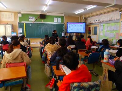 1月30日(月)に6年生は、インターネットトラブル防止授業を市川市少年センターから講師の先生を招いて行いました。スマホやタブレット、ゲーム機などからもインターネットに簡単に接続できる時代。便利な光の部分もありますが、犯罪被害に巻き込まれたり、けんかやいじめの原因になったりと陰の部分も見落としてはいけないと思います。あまり意識できていないことの一つとして、各端末は世界中のだれとでもつながっているということがあげられます。特定の個人とまたは、友だち同士で通信していたつもりでも、いつの間にかそこでの情報が拡散され、多くの人の目に触れてしまう危険性もあるのがインターネットです。個人情報(名前や写真など)を簡単にやり取りしていると、場合によってはとんでもないことに巻き込まれる恐れもあります。そうならないためには、どんなことに気を付けたらよいのか、友だちとの関わり方、おうちの方とのルール作り、困ったときの相談先など丁寧にお話しいただきました。