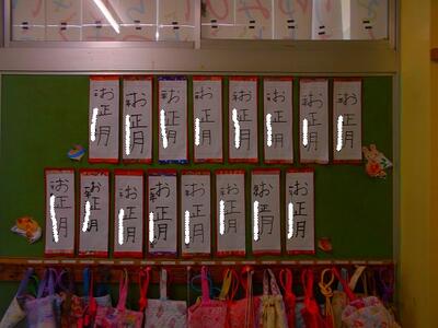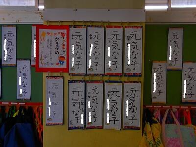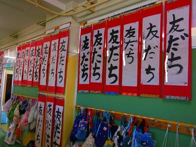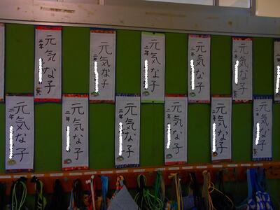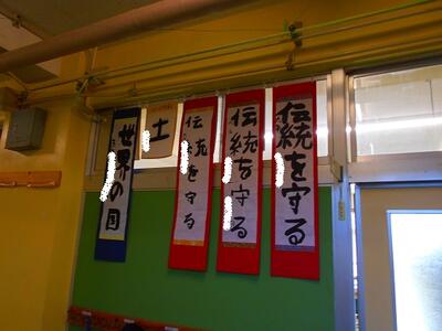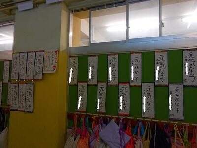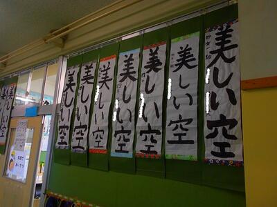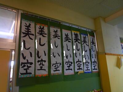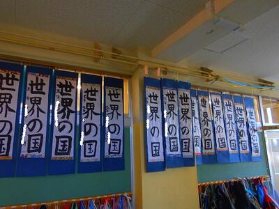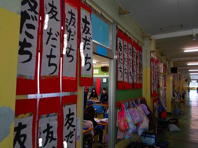 各学年、書初めの学習が終わり、教室前の廊下には頑張って書き上げた力作が掲示されています。