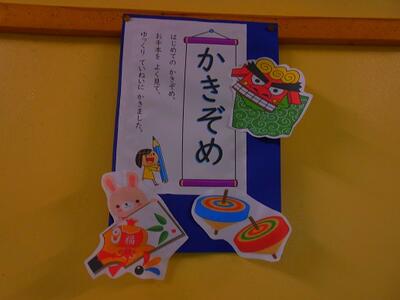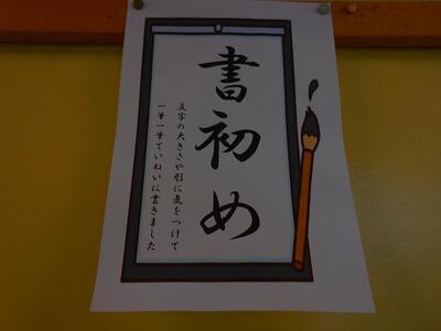 硬筆で「書初め」を行い、清書を台紙に貼って廊下に掲示しました。