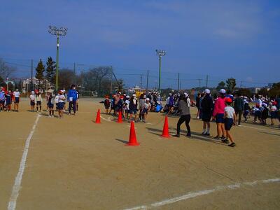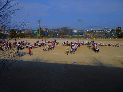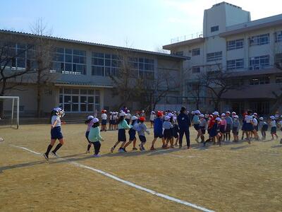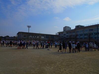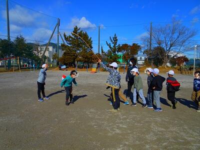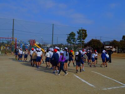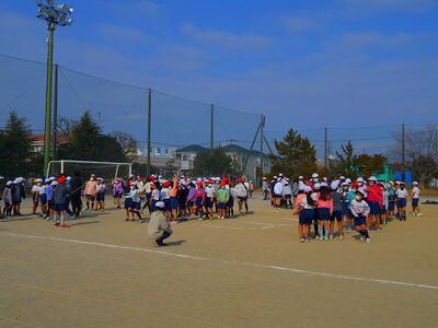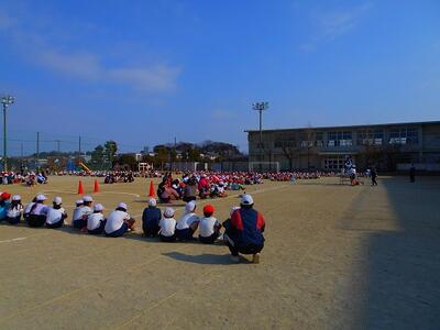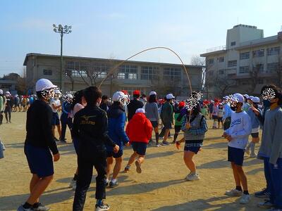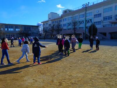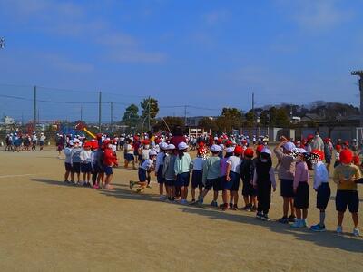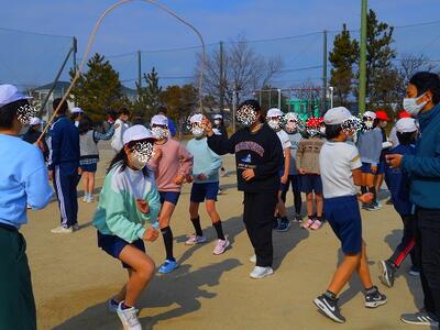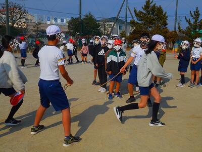 昨日、3校時に全校児童が校庭に集まって、長縄集会が行われました。ねらいとしては、「・長縄跳びの練習を通して、最後まで頑張る気持ちや力を合わせて協力する態度を養う。・学級の凝集性を高めるとともに、ペア学年の応援を通して学年間の交流を深める。・寒い時期でも、外で体を動かそうとする態度を育てる。」などがあります。健康委員会の児童が中心となって、開会式や閉会式、跳んだ回数の記録など主体的に活動できていました。1~3年生の挑戦中は4~6年生が、それぞれのペア学年の応援をし、4~6年生の挑戦中は1~3年生がしっかりと応援をしていました。また、学級内でも「いい感じ」「その調子」「どんまい」など声を掛け合いながら、それぞれが立てた目標回数を上回るように協力して挑戦していました。久しぶりに全校児童が一堂に会する機会が持ててとても良かったです。